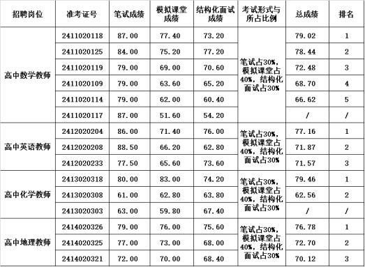 備注:根據(jù)《南京市中華中學(xué)2024年7月公開招聘教師公告》(寧事招公告(R)〔2024〕20號(hào))的要求,“面試中各項(xiàng)成績(jī)的合格分?jǐn)?shù)線均為60分”,上述崗位中,考生如有一項(xiàng)成績(jī)未達(dá)60分的,則為面試不合格,不進(jìn)行排名。