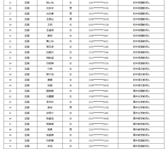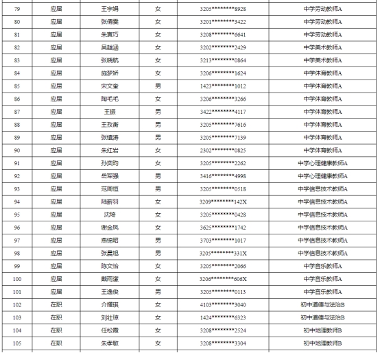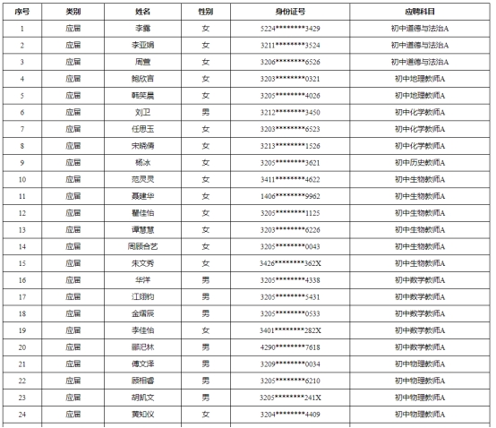 根據(jù)《2024年蘇州高新區(qū)公開招聘教育專項編制教師公告》要求,經(jīng)過報名、考試、體檢和政審,擬錄用李露等同志,現(xiàn)公示如下: