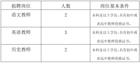 招聘臨聘教師7名:語文2名,英語3名,歷史2名。