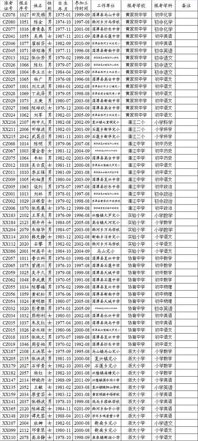 按照《湄潭縣2013年公開(kāi)考調(diào)縣城區(qū)學(xué)校教師簡(jiǎn)章》規(guī)定,經(jīng)報(bào)名、資格審查、筆試,田茂錫等60名考調(diào)人員進(jìn)入面試程序,現(xiàn)公示如下: