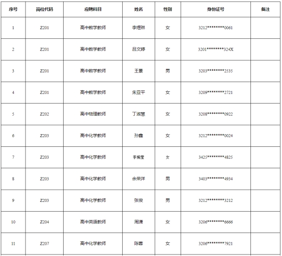 根據(jù)《2024年蘇州高新區(qū)公開補充招聘教師公告》要求,經(jīng)過報名、考試、體檢和政審,擬錄用李煜琳等同志,現(xiàn)公示如下: