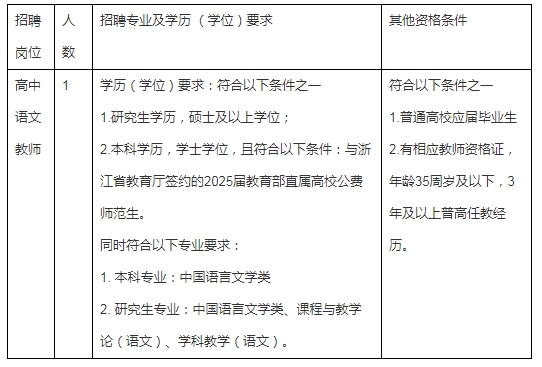 2023年、2024年普通高校畢業(yè)生(2022年10月1日至2024年12月31日畢業(yè)),或同期畢業(yè)并在2024年12月底前取得學位證書和國家教育部出具的學歷學位認證書的國(境)外留學人員,以及按國家政策規(guī)定可以享受應屆畢業(yè)生就業(yè)待遇的其他情形人員,可按2025年應屆畢業(yè)生身份應聘。已在浙江省山區(qū)26縣和海島縣及寧波大市范圍內(nèi)學校任教尚在合同期內(nèi)的教師需要提供所在學校同意報考證明。