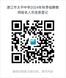 2.入圍面試者應(yīng)在規(guī)定時間內(nèi)攜帶線上報名登記的材料原件,到湛江市太平中學(xué)校長室進(jìn)行現(xiàn)場資料審核及面試。否則當(dāng)棄權(quán)處理。