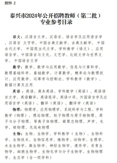 2.泰興市2024年公開招聘教師(第二批)專業(yè)參考目錄