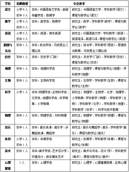 2.學(xué)科專業(yè)對口,普通話水平須達(dá)二乙及以上(其中小學(xué)老師和初中語文老師應(yīng)達(dá)二級甲等以上),英語教師須持有英語專業(yè)八級證書,具備相應(yīng)學(xué)段的教師資格證書。