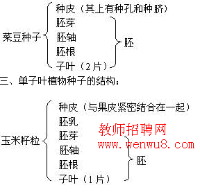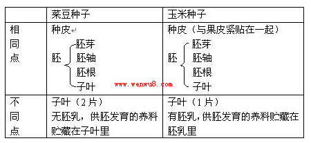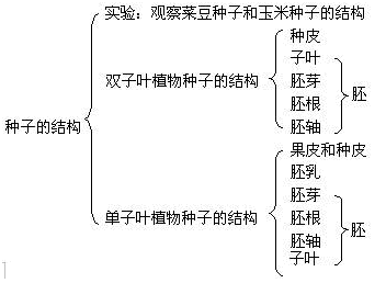 2、在學(xué)習(xí)過程中,學(xué)生往往誤認(rèn)為胚乳是胚的結(jié)構(gòu)之一,卻不認(rèn)為子葉是胚的結(jié)構(gòu)之一。因此,教師在比較種子結(jié)構(gòu)時(shí),應(yīng)該特別強(qiáng)調(diào)胚的結(jié)構(gòu)是包括子葉而不包括胚乳的。