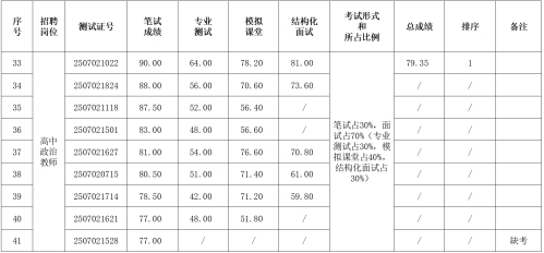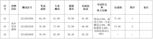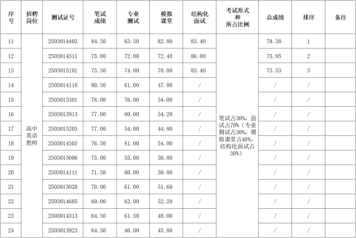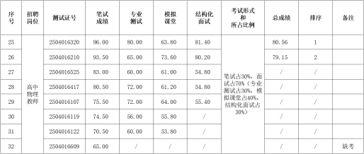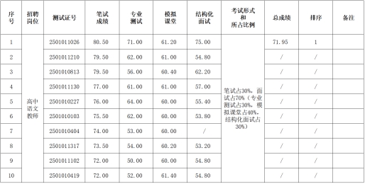 備注:根據(jù)《南京市教育系統(tǒng)部分事業(yè)單位2024年10月公開招聘教師公告》(寧事招公告(R)〔2024〕36號)的要求,“面試中各項(xiàng)成績的合格分?jǐn)?shù)線均為60分”,上述崗位中,考生如有一項(xiàng)成績未達(dá)60分的,則為面試不合格,不進(jìn)行排名。