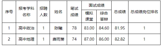 根據(jù)《南京市教育系統(tǒng)部分事業(yè)單位2024年10月公開招聘教師公告》(寧事招公告(R)〔2024〕36號)要求,在南京市秦淮區(qū)人社局和教育局監(jiān)督指導(dǎo)下,我校面試工作已于2024年11月30日結(jié)束,F(xiàn)根據(jù)總成績排名,確定入圍體檢人員名單(入圍人員的體檢時間另行通知),并予以公示。