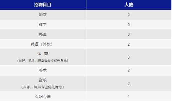 2、具備與招聘崗位一致的教師資格證書,以及普通話二級(jí)及以上等級(jí)證書(語文崗位應(yīng)取得二級(jí)甲等及以上等級(jí)證書);3、具有同等中小學(xué)環(huán)境下相應(yīng)崗位的教學(xué)工作經(jīng)驗(yàn);4、熟悉教學(xué)、學(xué)生關(guān)愛和延展課程方面相關(guān)知識(shí);5、具有骨干教師稱號(hào)的教師優(yōu)先錄用。