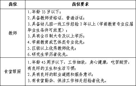 因園所發(fā)展需要,現(xiàn)面向社會公開招聘優(yōu)秀保教人員、醫(yī)務(wù)工作者及食堂人員,現(xiàn)將招聘具體事項公告如下: