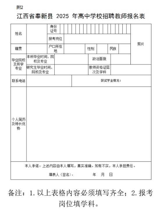 考生根據(jù)自己的意愿,填寫(xiě)《江西省奉新縣2025年高中學(xué)校招聘教師報(bào)名表》(附件2,網(wǎng)上自行下載),于2025年2月27日前將《報(bào)名表》電子版發(fā)送至fxjtjrsg2022@163.com郵箱。