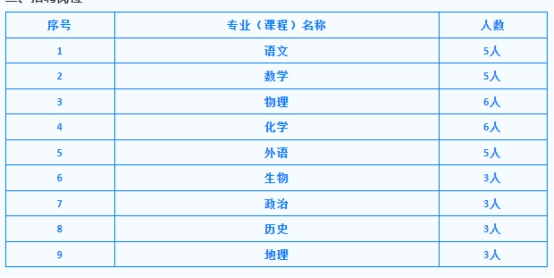 語(yǔ)文1名,數(shù)學(xué)1名,英語(yǔ)2名,物理2名,歷史1名,政治1名,體育1名
