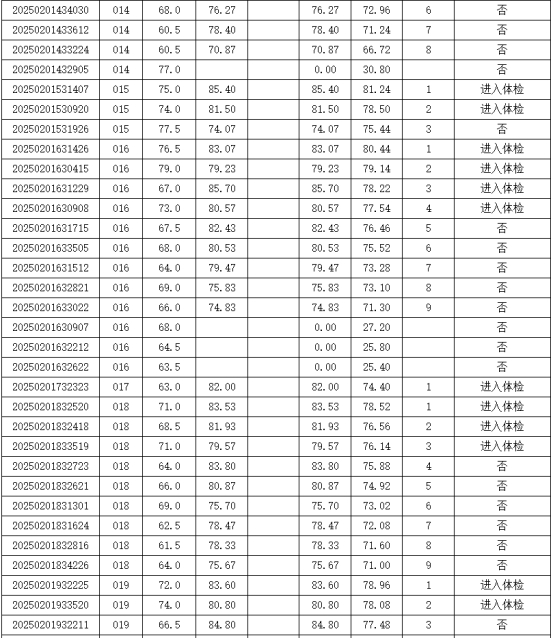 蘇州市吳江區(qū)教育系統(tǒng)公開招聘2025年優(yōu)秀畢業(yè)生面試成績(jī)及進(jìn)入體檢人員名單,已在面試結(jié)束后當(dāng)天在面試考點(diǎn)張榜公布,現(xiàn)將進(jìn)入體檢名單公示。請(qǐng)進(jìn)入體檢環(huán)節(jié)的考生于2025年3月4日到指定醫(yī)院體檢,其它事宜將在QQ群內(nèi)通知。