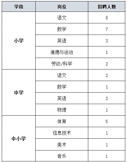 在區(qū)委教育工委大力支持下,學校發(fā)展迅速,辦學規(guī)模不斷擴大,2025年秋季擬新增14個教學班,其中招收小學8個教學班,初中6個教學班。教師是教育發(fā)展的第一資源,為保障教育教學開展,提升學校教學質量,特開展此次聘用教師招聘工作。