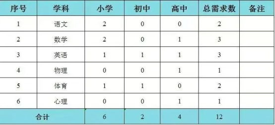 根據(jù)學(xué)校發(fā)展需要,現(xiàn)面向全國公開招聘專任教師12人,具體如下: