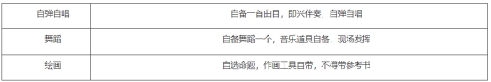 才藝展示:以下項目自選一項,時間3分鐘以內(nèi)。(分值20分)