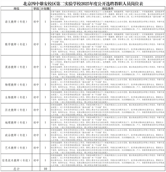 根據(jù)工作需要,北京四中雄安校區(qū)第二實(shí)驗(yàn)學(xué)校公開選聘教職人員10名,具體事項(xiàng)公告如下。