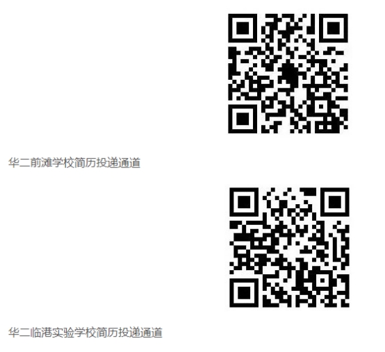 說明:請掃碼投遞簡歷,如兼報兩所學(xué)校,請分別掃碼填報!該投遞僅用于信息收集,請在最后附上個人簡歷。個人簡歷需為PDF格式,命名為:應(yīng)聘崗位學(xué)段學(xué)科+姓名+最高學(xué)歷+畢業(yè)學(xué)校(例:初中語文+張三+碩士+XX大學(xué))