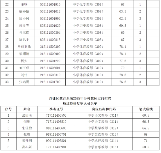 現(xiàn)將丹徒區(qū)教育系統(tǒng)2025年集中公開招聘教師、鄉(xiāng)村教師定向招聘通過資格復(fù)審人員名單予以公示。面試、技能測試具體時間及要求同步在丹徒教育信息網(wǎng)和鎮(zhèn)江市人事考試考工服務(wù)平臺發(fā)布,請及時關(guān)注。
