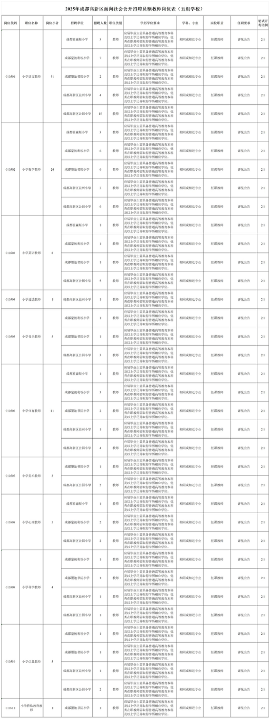 本次公開(kāi)招聘為成都高新區(qū)教育系統(tǒng)編制外招聘,招聘人員實(shí)行合同制管理,納入員額教師管理序列。具體招聘單位、名額、崗位見(jiàn)《2025年成都高新區(qū)面向社會(huì)公開(kāi)招聘員額教師崗位表(五組學(xué)校)》(以下簡(jiǎn)稱《崗位表》)。
