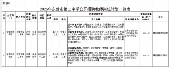 公開(kāi)招聘教師的崗位條件、招聘人數(shù)等具體要求見(jiàn)《2025年?yáng)|營(yíng)市第二中學(xué)公開(kāi)招聘教師崗位計(jì)劃一覽表》(附件1)。