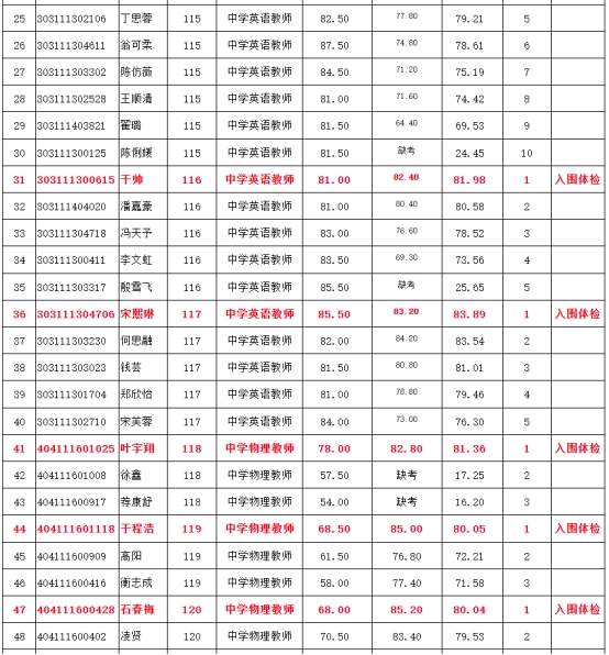 根據(jù)《2025年鎮(zhèn)江市潤州區(qū)教育系統(tǒng)公開招聘教師公告》規(guī)定,現(xiàn)將2025年潤州區(qū)教師招聘總成績(第一批)公告如下,表中紅色字體標(biāo)注人員為入圍體檢、考察人選。公告時間為6月4日至6月6日,公告結(jié)束后將組織入圍考生進(jìn)行體檢、考察,具體時間和地點另行通知。咨詢電話:潤州區(qū)教育局 0511-85589160;監(jiān)督電話:潤州區(qū)教育局0511-85589112區(qū)人社局0511-80820590區(qū)紀(jì)委監(jiān)委0511-85622633。