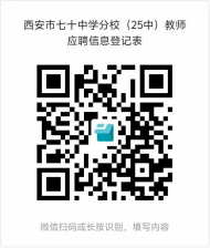 應(yīng)聘人員掃描下方二維碼在線填寫(xiě)《西安市第七十中學(xué)分校(25中)教師應(yīng)聘信息登記表》。