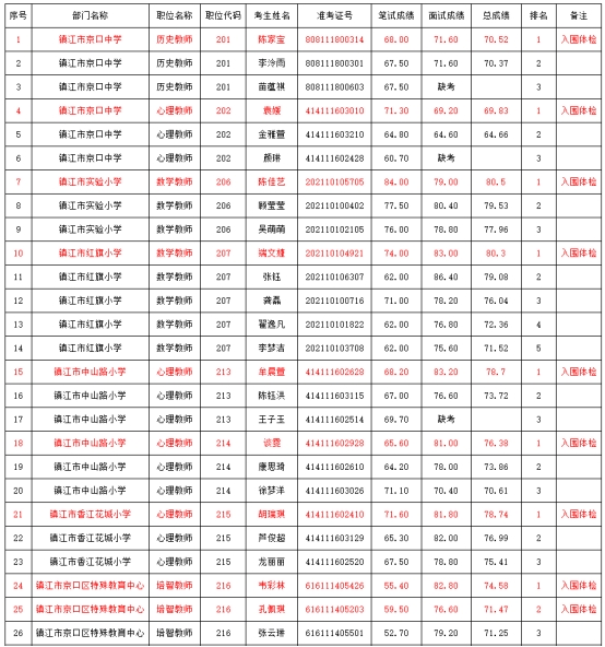 鎮(zhèn)江市京口區(qū)2025年集中公開招聘教師總成績(jī)及入圍體檢人員名單公示(第三批)