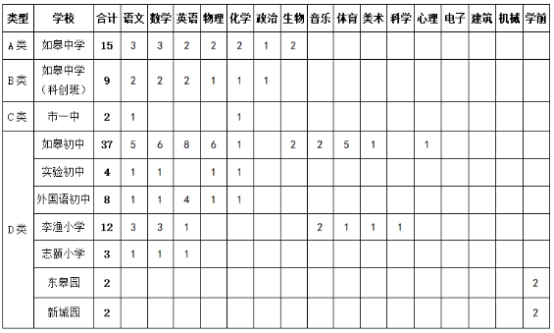 為適應(yīng)城區(qū)教育事業(yè)發(fā)展需要,優(yōu)化教師隊(duì)伍學(xué)科結(jié)構(gòu),促進(jìn)教育事業(yè)可持續(xù)發(fā)展,現(xiàn)面向我市在編在崗教師實(shí)施教師選聘工作。