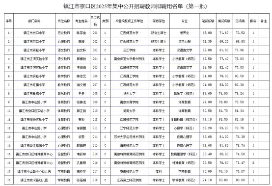 附:《鎮(zhèn)江市京口區(qū)2025年集中公開招聘教師擬聘用名單(第一批)》