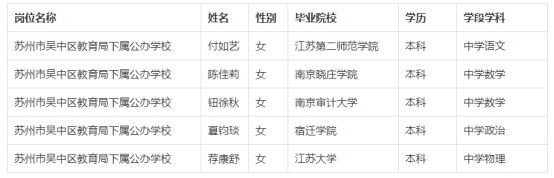 根據(jù)《蘇州市吳中區(qū)教育系統(tǒng)公開招聘2025年優(yōu)秀畢業(yè)生公告》的規(guī)定,經(jīng)公開報名、筆試、面試、體檢和考察等程序,擬錄用以下5名同志,現(xiàn)予以公示,公示時間為2025年7月29日至2025年8月6日。