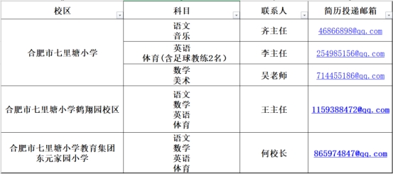 合肥市七里塘小學教育集團因教學工作需要,現(xiàn)面向社會公開招聘語文、數(shù)學、英語、體育、音樂、美術教師若干名。