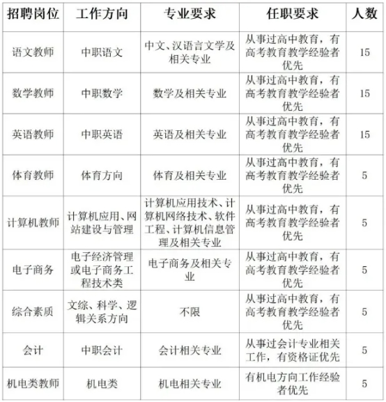 (1)報名專業(yè)教師崗位有企業(yè)工作經(jīng)歷,具備高級技能等級證書者優(yōu)先;報名語數(shù)外專業(yè)教師崗位,有語文、數(shù)學、英語高中考試輔導經(jīng)歷者優(yōu)先。