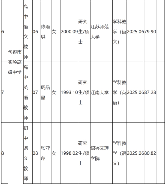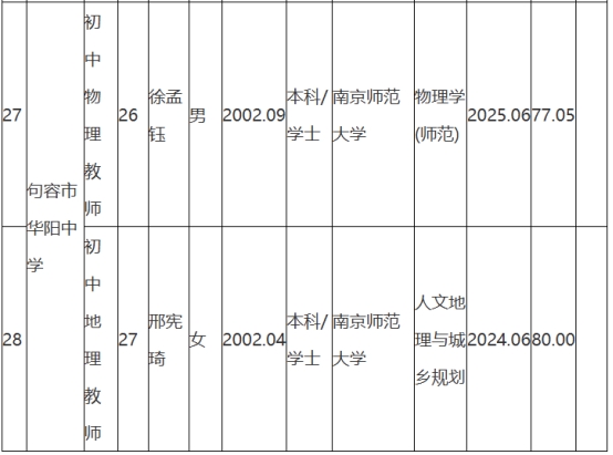 根據(jù)《句容市教育局所屬學(xué)校2025年第一批校園公開(kāi)招聘教師公告》(鎮(zhèn)句事招公告〔2024〕8號(hào))經(jīng)資格審查、面試、體檢和考察,現(xiàn)將句容市教育局所屬學(xué)校2025年第一批校園招聘擬聘用人員名單予以公示,公示時(shí)間2025年8月25日-9月2日。