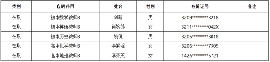 根據(jù)《2025年蘇州高新區(qū)教育系統(tǒng)第二批公開(kāi)招聘事業(yè)編制教師公告》要求,經(jīng)過(guò)報(bào)名、資格初審、考試、資格復(fù)審,體檢和考察合格,擬錄用劉新等5名同志,現(xiàn)予以公示: