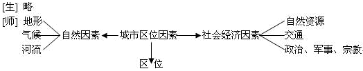 教學(xué)目標(biāo):了解城市區(qū)位兩層含義;了解影響城市的區(qū)位因素包括自然地理和社會(huì)經(jīng)濟(jì)條件兩方面;理解自然地理?xiàng)l件對(duì)城市區(qū)位影響。
