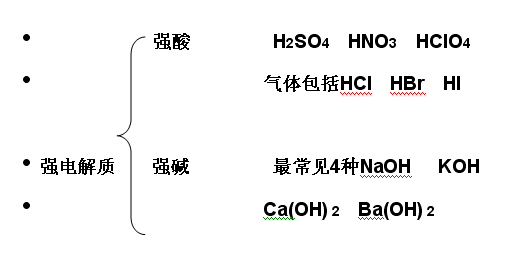 強(qiáng)堿、強(qiáng)酸、大多數(shù)鹽 |