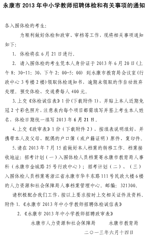 永康市2013年中小學(xué)教師招聘體檢誠信表.rar