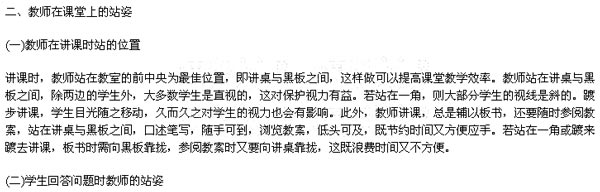 (4)忌側身而站。心理學研究表明,側身而站和面向黑板而站說明教師的心理是封閉的,不利于闡述教學內容,而且給學生留下缺乏修養(yǎng)的印象。
