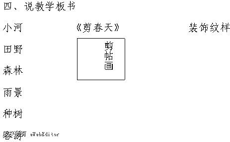我執(zhí)教的內(nèi)容是義務(wù)教育課程標(biāo)準(zhǔn)實(shí)驗(yàn)教科書小學(xué)美術(shù)第八冊(cè)第十課《剪紙?zhí)ā贰=滩囊笪覀円龑?dǎo)學(xué)生領(lǐng)會(huì)剪紙藝術(shù)是人民熱愛生活的情感,表達(dá)對(duì)美好生活的期盼,要求我們選擇不同顏色的紙,剪出不同的形象,再將它們拼帖成一幅作品,其實(shí)這就是多色剪紙。在教學(xué)目標(biāo)和任務(wù)不變的前提下,舍棄教材內(nèi)容,結(jié)合學(xué)生的生活經(jīng)歷,我選擇了《剪春天》這個(gè)內(nèi)容。