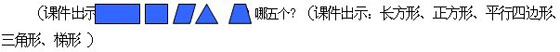 教學(xué)準(zhǔn)備:課件、長方形、正方形、平行四邊形、三角形、梯形的學(xué)具教具若干個(gè)。