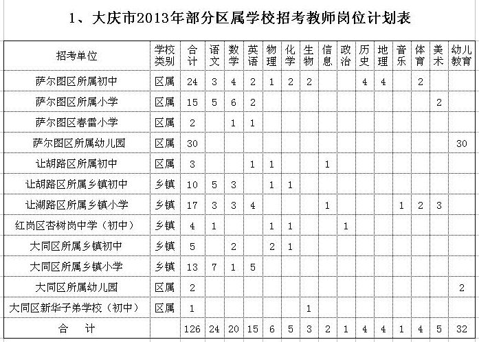 按照《大慶市2013年部分區(qū)屬學(xué)校招考教師公告》有關(guān)規(guī)定,根據(jù)報(bào)名情況和現(xiàn)場(chǎng)資格審查結(jié)果,對(duì)部分招考職位取消或縮減,將現(xiàn)將調(diào)整后計(jì)劃公布如下: