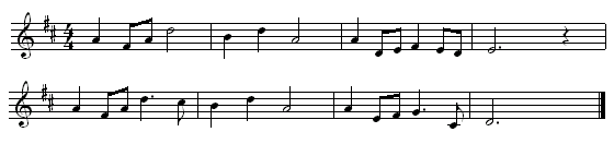 播放第二句旋律。 教師:和第一句比有什么變化? |