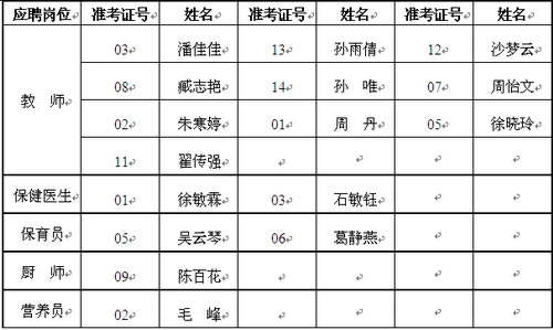 按照《北塘區(qū)教育局幼兒園編外教師招聘公告》和《北塘區(qū)教育局幼兒園編外人員招聘公告》的有關(guān)規(guī)定,根據(jù)考生考核總成績,現(xiàn)將進(jìn)入體檢程序的考生名單予以公示: