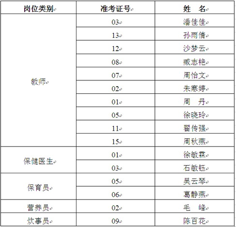 按照《北塘區(qū)教育局幼兒園編外教師招聘公告》和《北塘區(qū)教育局幼兒園編外人員招聘公告》的工作要求,編外教師及其他編外人員的招聘工作已基本結束。根據(jù)應聘者考核總成績以及體檢、考察結果,下列16名應聘人員擬錄用,名單公布如下:
