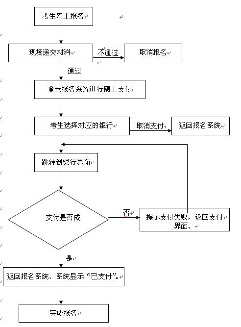 1月14日前考生登錄報(bào)名系統(tǒng)查詢報(bào)名資格審核結(jié)果(已到報(bào)名點(diǎn)遞交材料,1月16日仍未審核通過(guò)的考生要及時(shí)到報(bào)名點(diǎn)查詢?cè)颍,審核通過(guò)的考生必須在1月18日前通過(guò)網(wǎng)上支付繳納報(bào)名考試費(fèi)。考生報(bào)名資格必須經(jīng)過(guò)審核通過(guò)后,方能進(jìn)行網(wǎng)上支付報(bào)名費(fèi)的操作。報(bào)名資格未經(jīng)審核或?qū)徍瞬煌ㄟ^(guò)的考生,均無(wú)法進(jìn)行網(wǎng)上支付報(bào)名費(fèi)的操作。雖審核通過(guò),但逾期不上網(wǎng)支付考試費(fèi)的考生,按自動(dòng)放棄報(bào)名資格處理。