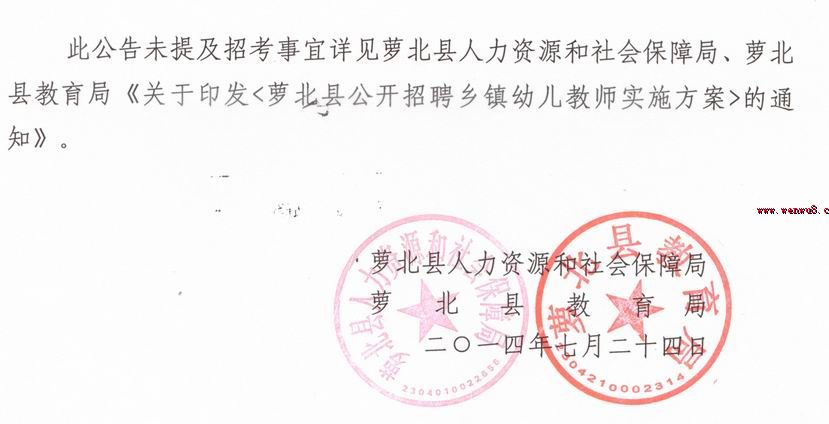 黑龍江省鶴崗市蘿北縣2014年幼兒教師招聘公告