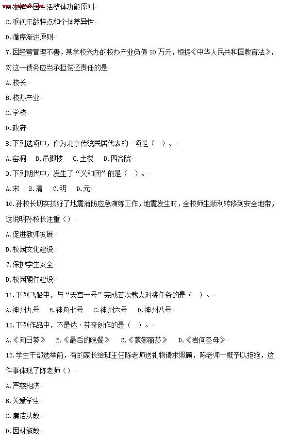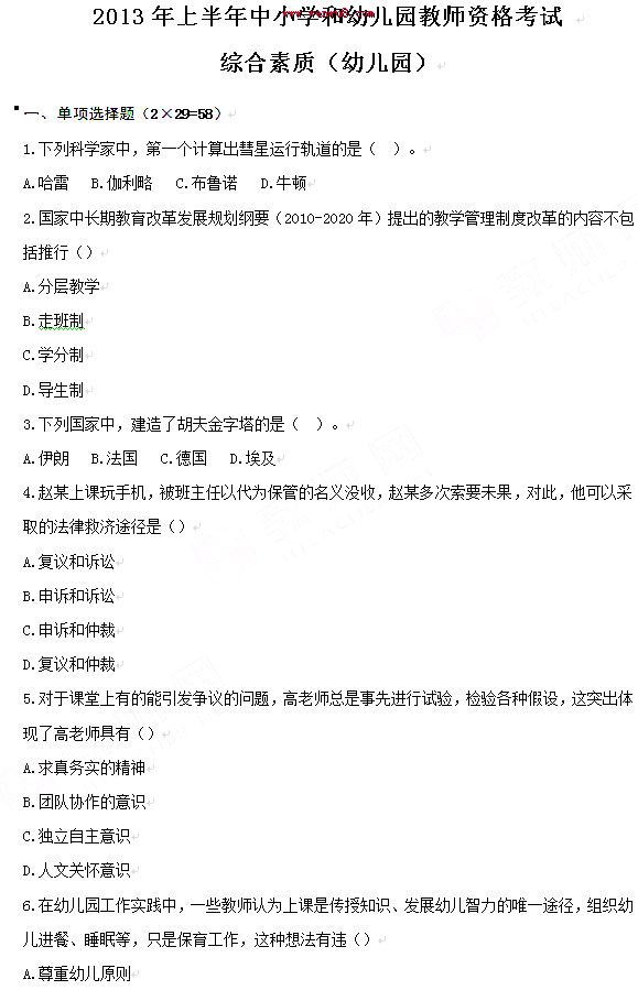 2013年上半年中小學和幼兒園教師資格考試《幼兒綜合素質》真題