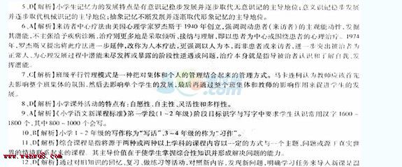 1、C【解析】l776—1787年,德國著名哲學(xué)家康德曾先后四次在哥尼堡大學(xué)講授教育學(xué),是較早在大學(xué)開設(shè)教育學(xué)講座的教授。后來,赫爾巴特接替了康德在哥尼斯堡大學(xué)的教育學(xué)教席,并于1806年出版了《普通教育學(xué)》。這是一本自成體系的教育學(xué)著作,它標(biāo)志著教育學(xué)已經(jīng)成為一門獨立的學(xué)科。該書分為緒論、教育的一般目的、興趣之多方面(教學(xué))、品格之道德力量(德育)四個部分! 2、【解析】由歷史記載來看,我國的小學(xué)產(chǎn)生于殷周時代!睹献印る墓稀氛f:"夏曰校,殷日序,周日癢。學(xué)則三代共之,皆所以明人倫也。"據(jù)推測,校、序、庠都是當(dāng)時的小學(xué)。