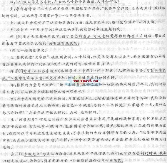11.閱讀下面《記承天寺夜游》教學實錄(節(jié)選),按要求答題(畫線語句的序號與選項的序號是對應(yīng)的)。